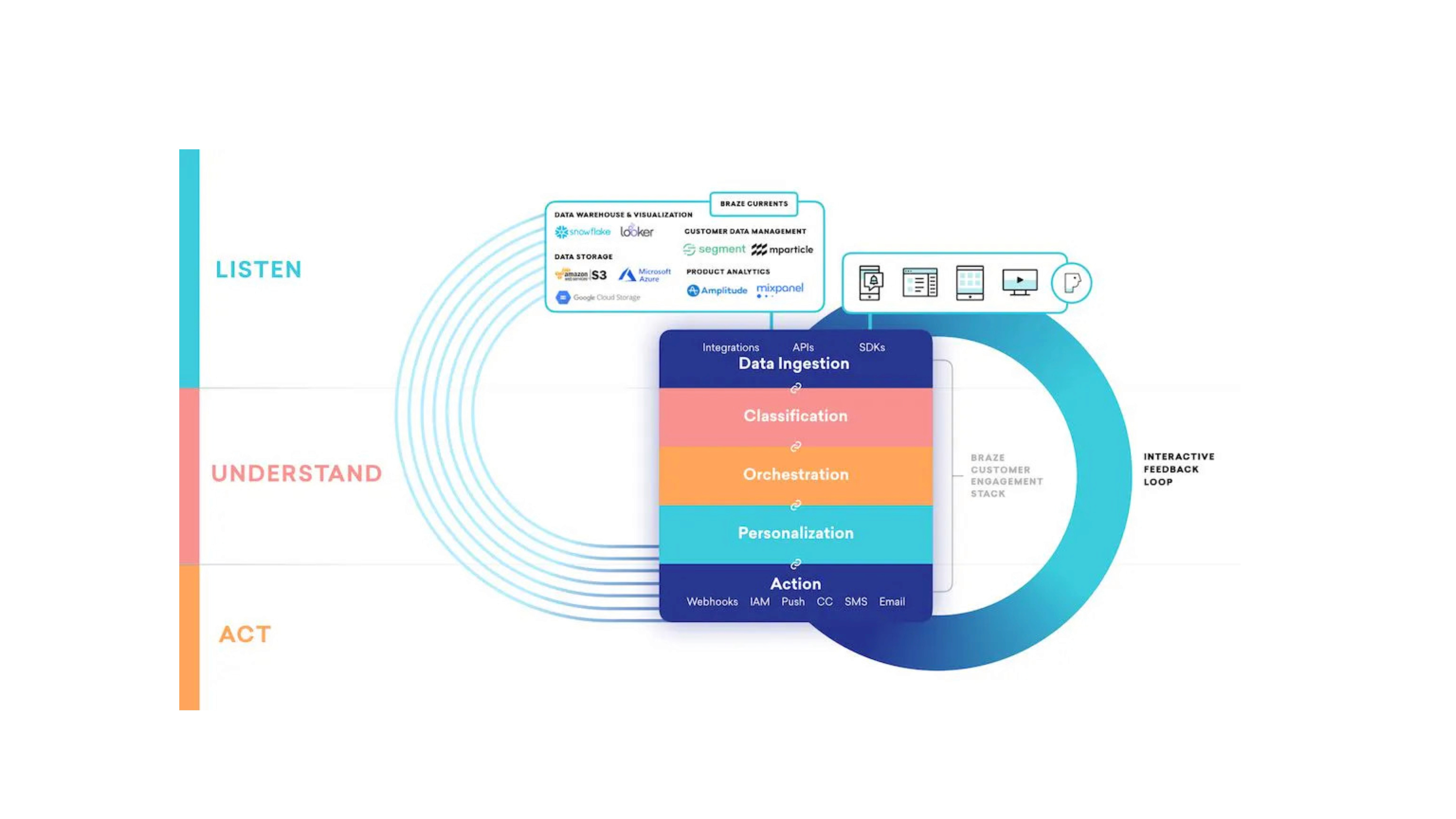 Braze Intelligence Suite covers Timing, Channel and Selection. It helps you automate decision-making with data-based insights. From delivery time to multivariate testing, intelligent suite streamlines the process of creating dynamic, cross-channel experiences that truly optimise at scale and help to elevate your presence with your audience.